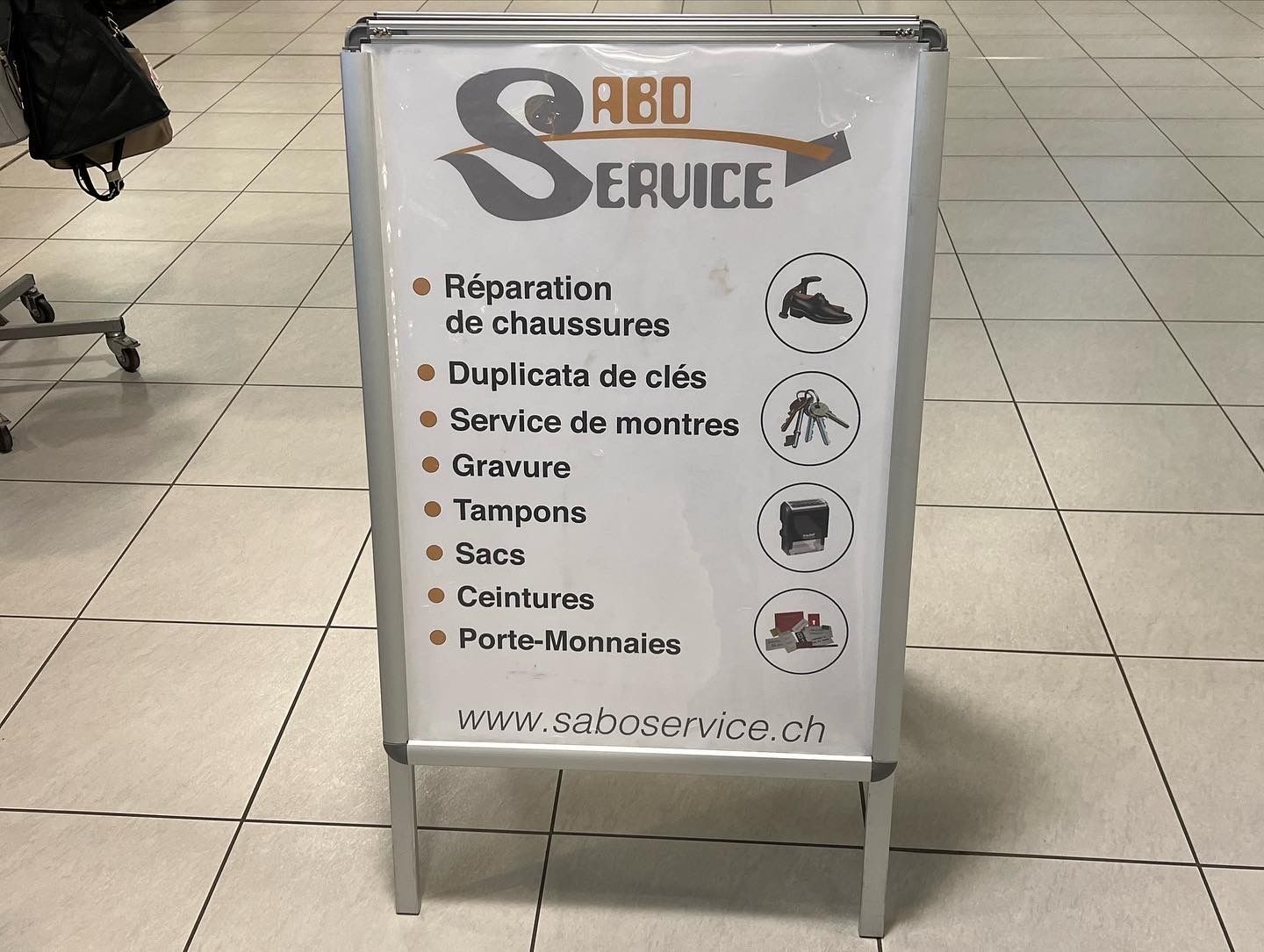 Ouvert depuis août 2012, SABO SERVICE se trouve au Centre commercial ARCenter à Vernier et vous offre une palette de prestations aussi diverses que variées allant de la cordonnerie aux gravures, en passant par la vente et confection de tampons et de duplicatas de tous types de clés.